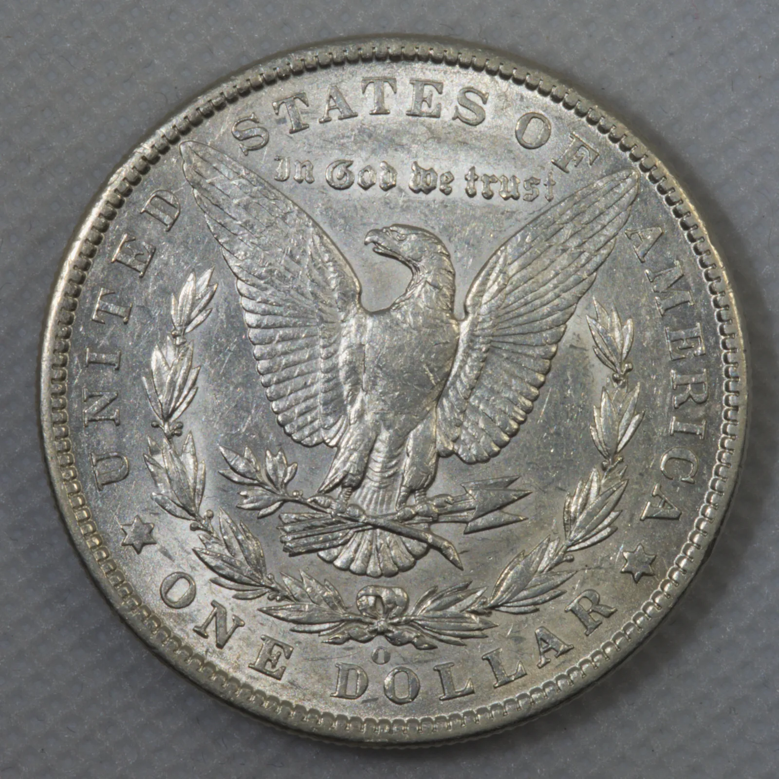 The Morgan dollar is a United States dollar coin minted from 1878 to 1904, in 1921, and beginning again in 2021. It was the first standard silver dollar minted since the passage of the Coinage Act of 1873, which ended the free coining of silver and the production of the previous design, the Seated Liberty dollar. It contained 412.5 grains of 90% pure silver (or 371.25 gr = 24.056 g = 0.7735 oz t of pure silver). The coin is named after its designer, United States Mint Assistant Engraver George T. Morgan. The obverse depicts a profile portrait representing Liberty, modeled by Anna Willess Williams, while the reverse depicts an eagle with wings outstretched. The mint mark, if present, appears on the reverse above between D and O in "Dollar".