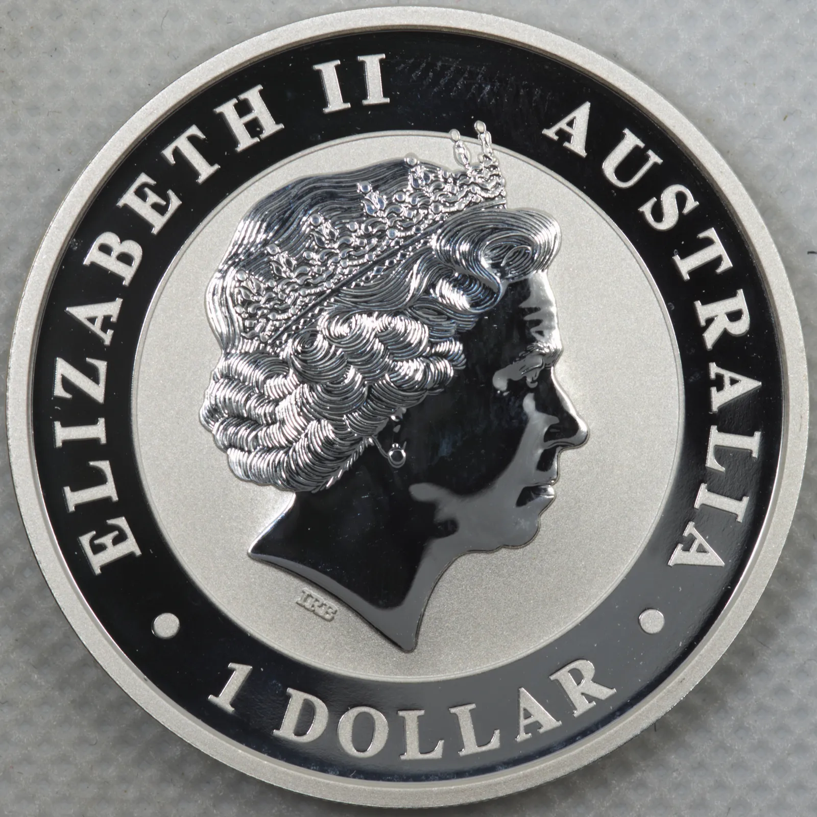 The Silver Kookaburra is a silver bullion coin originating from Australia, and produced at the Perth Mint starting in 1990. The coins were .999 fine silver until the 2018 edition, which increased in purity to .9999 silver. While the obverse of the coin always depicts Queen Elizabeth II, the reverse side changes every year, always featuring a kookaburra, a bird native to Australia. Due to the yearly design change and limited production of the one-ounce coins, they have higher collectible value than some other bullion coins. The Perth Mint generally ships the coins in individual plastic capsules. One-ounce coins ship in shrink wrap rolls of 20, with 5 rolls in each box of 100. They are minted in four sizes; 1000g, 10, 2 and 1 troy ounces.