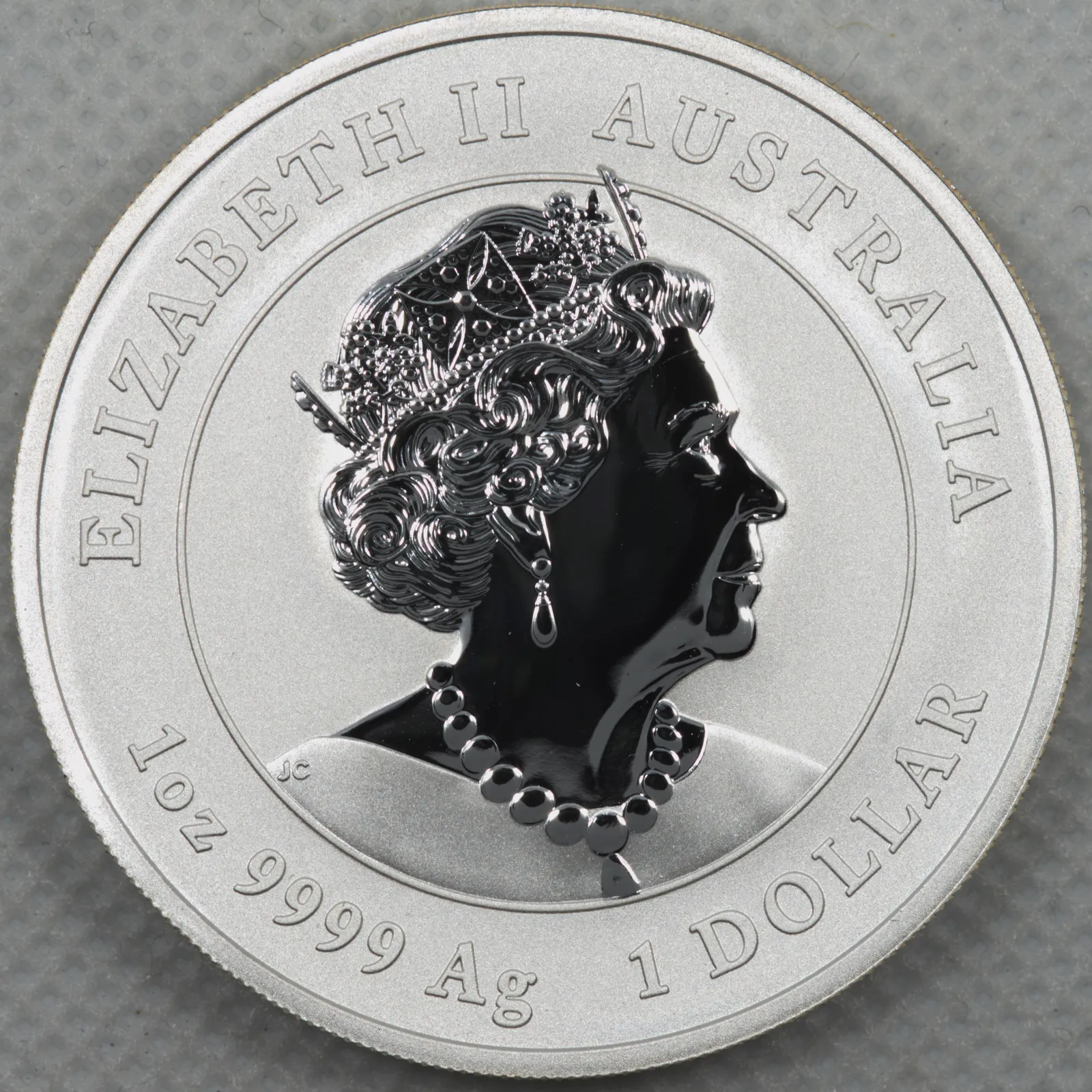 -- Obverse: Features the effigy of Queen Elizabeth II by Ian Rank-Broadley, along with the coin's year, weight, purity, and monetary denomination.