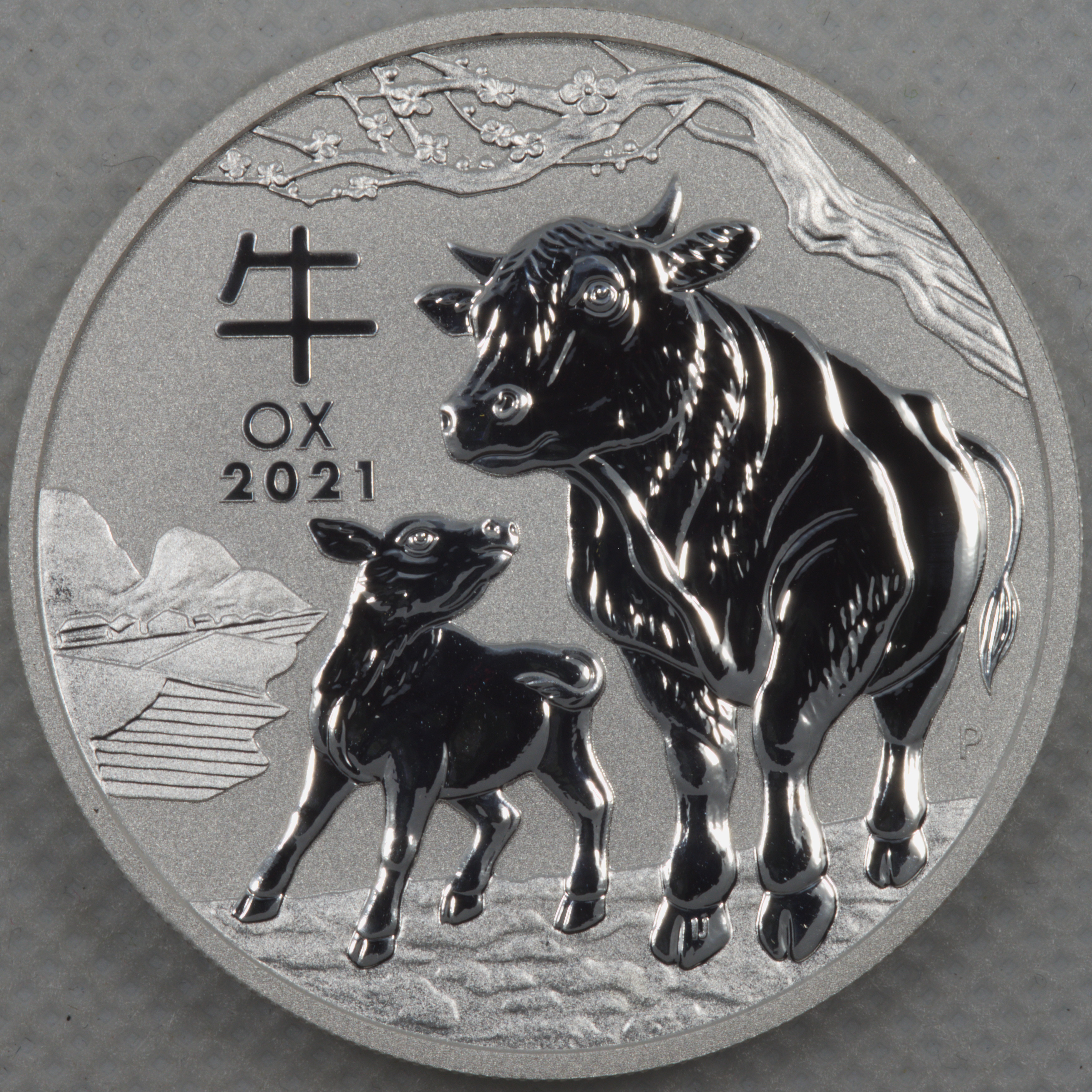 -- Reverse: Showcases a new design of the corresponding Chinese zodiac animal each year, along with the Chinese character for that animal and the Perth Mint's "P" mintmark.