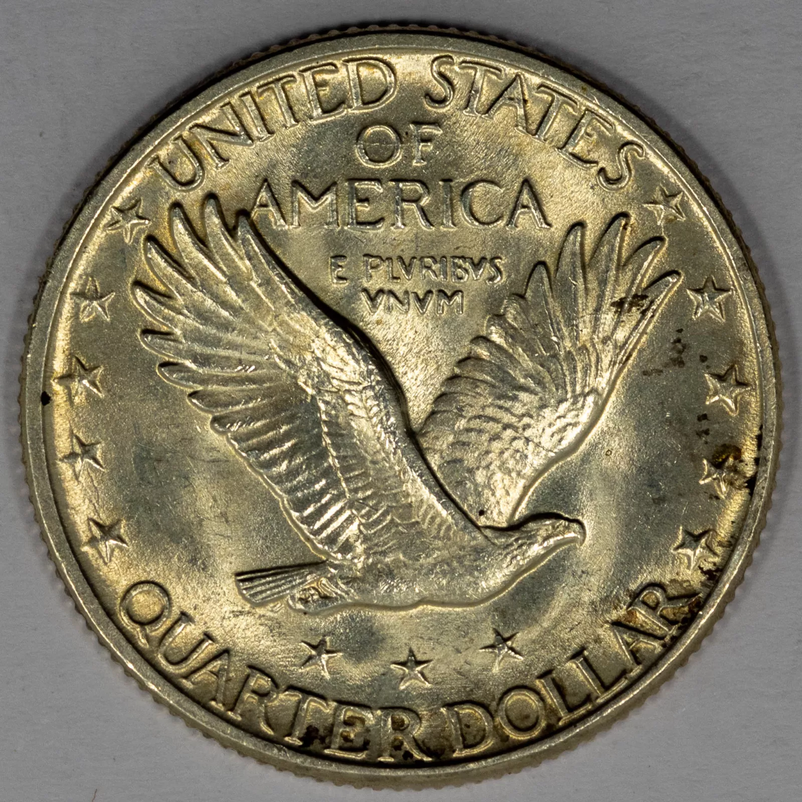 The Standing Liberty quarter is a 25-cent coin that was struck by the United States Mint from 1916 to 1930. It succeeded the Barber quarter, which had been minted since 1892. Featuring the goddess of Liberty on one side and an eagle in flight on the other, the coin was designed by American sculptor Hermon Atkins MacNeil.