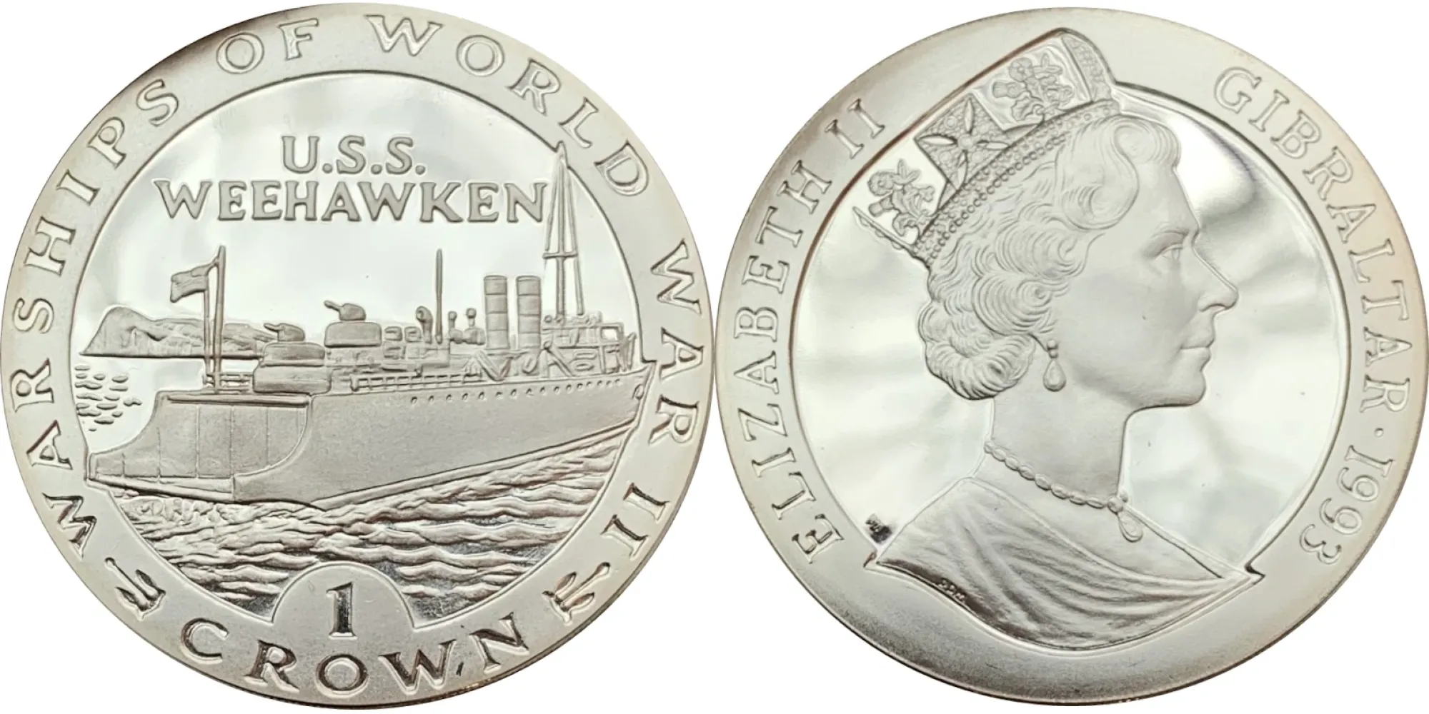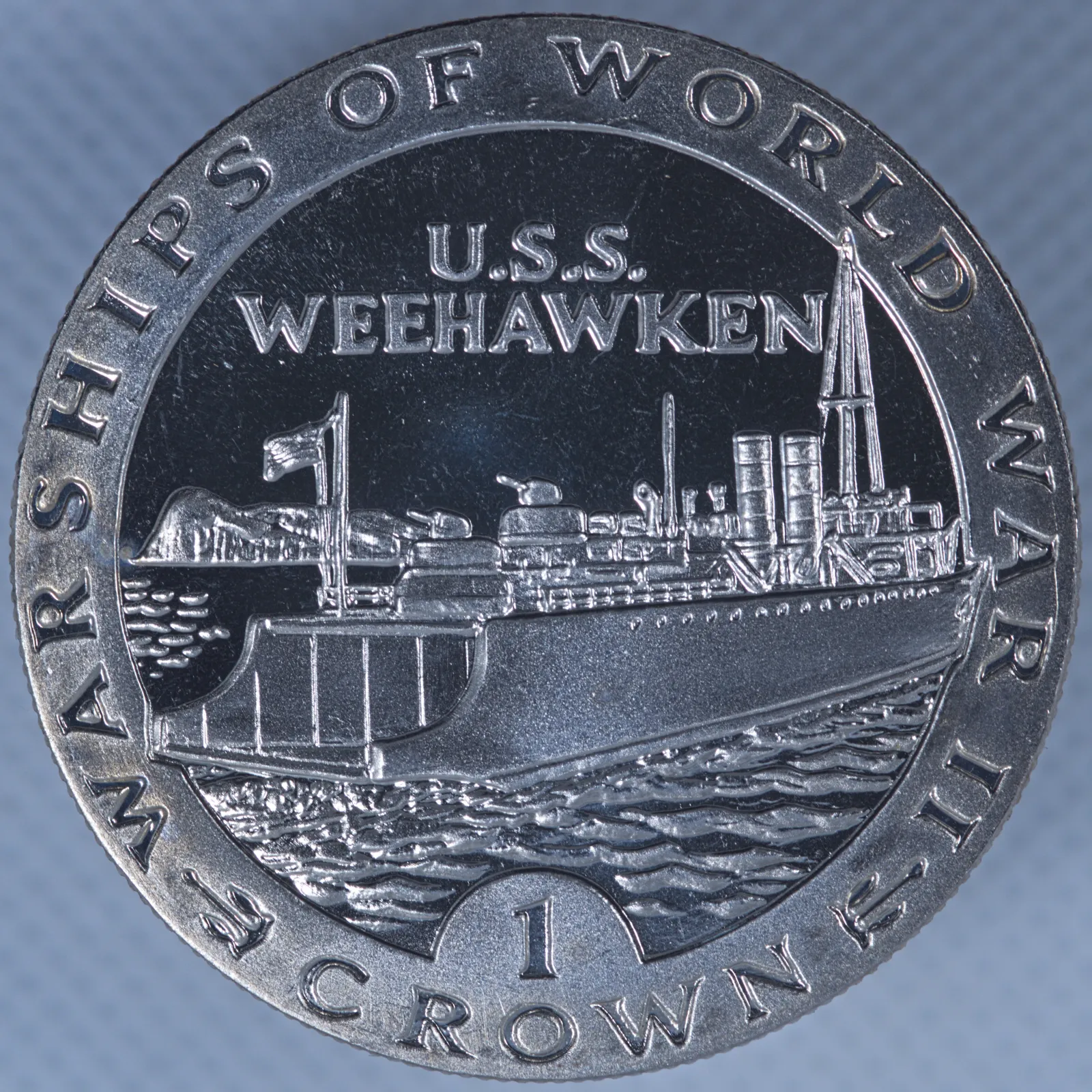 Few car ferries have enjoyed so illus trious a career. Emerging virtually unscathed from action in both the Mediterrenean and the Pacific, she won two battle stars before succumbing to a typhoon in October 1945. Acquired by the Navy in June 1942, the SS Estrada Palma was converted to a minelayer (CM-12) and renamed the Weehawken. As part of Mine Division 50 she sailed for Morocco in November. In December she laid a defensive minefield off Casablanca before leaving on 6th January 1943 to deliver minelaying equipment to Gibraltar. She was part of a convoy to Sicily in July, and laid defensive minefields around the invasion beaches at Gela. In April 1944 MinDiv 50 was dissolved and she was assigned to the Pacific fleet, joining Service Squadron 6. She headed for the South Pacific and continued her support duties throughout the violent battle for control of Okinawa, surviving several Kamikaze attacks.