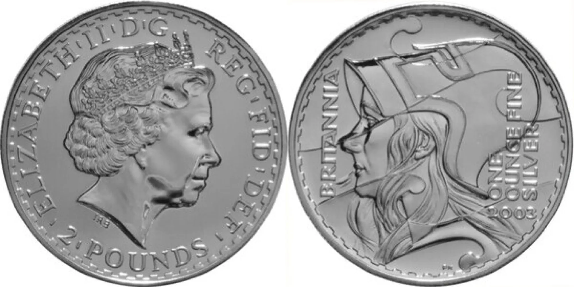 This Philip Nathan design is a side-facing portrait of Britannia wearing a Corinthian helmet.