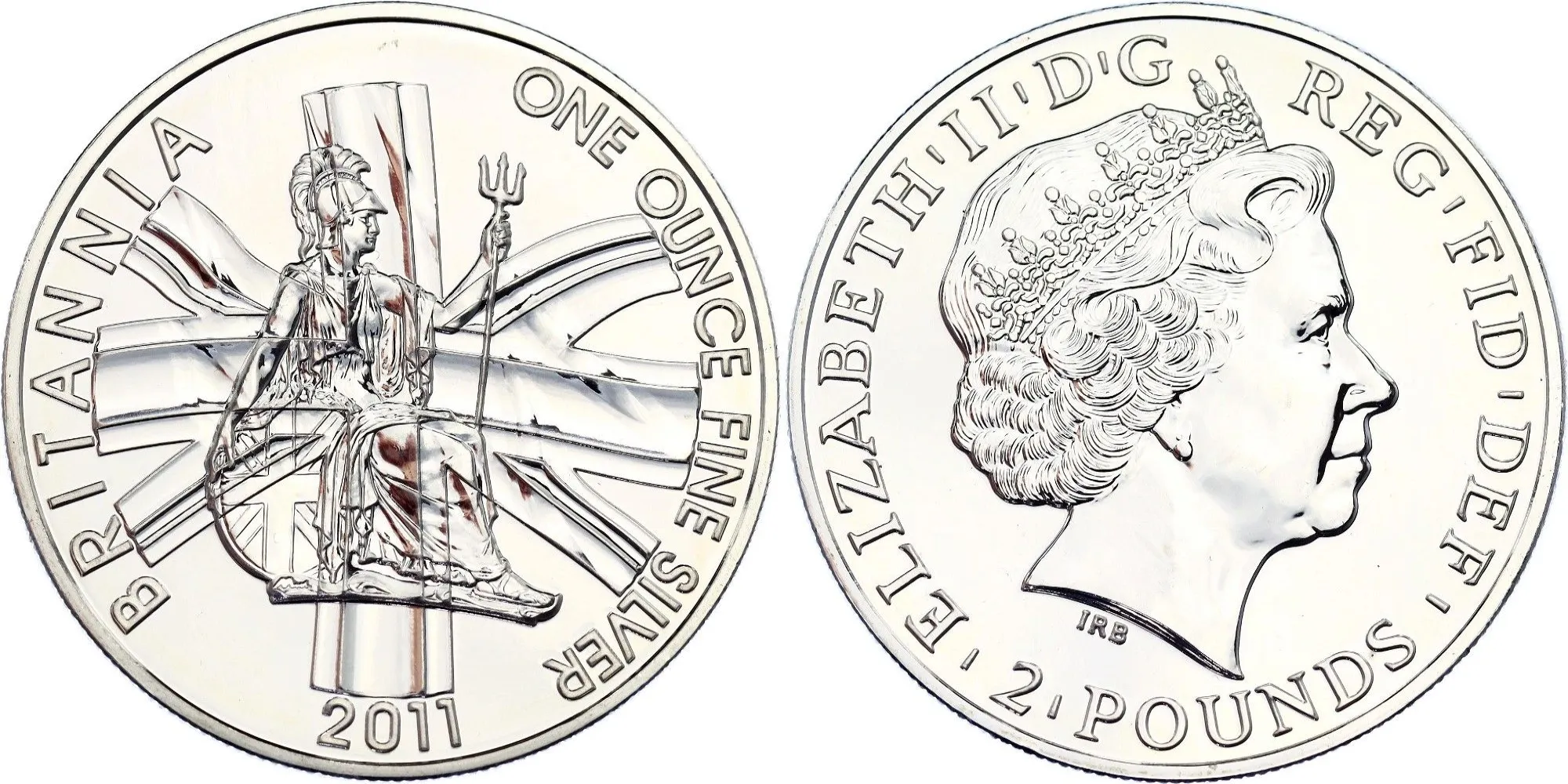 This design by David Mach depicts Britannia holding a stylized Union Jack.